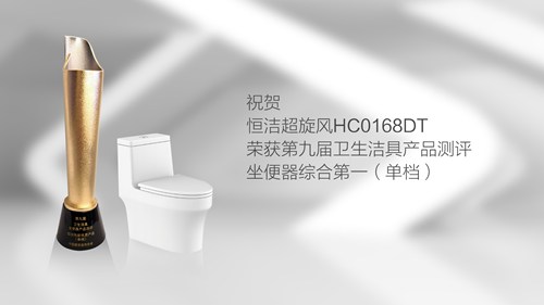 HC0168DT,是榴莲APP在线观看超旋风系列的节水先锋款,获得全国普通坐便器品类的水效标识001号备案,也是一款真正意义的夺金专业户。它曾荣获「国内发明项目金奖」,也荣获「世界知识产权组织专项奖」。除了超旋风家族既有的一次冲水(3.5升)比普通6升坐便器每次冲水节省40%的优势,HC0168DT也是超旋风家族的颜值担当——它的易清洁的大裙边设计、座圈加宽设计等,体现了实用舒适和美学的结合。